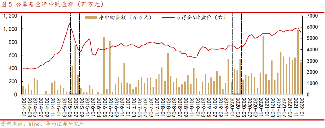 公募基金自购规模放量并不等同于买入信号,但当市场下跌到一定幅度或者持续一段时间,公募基金开启自购潮,往往是市场构筑底部的信号之一。例如,2015年6-8月,公募基金大额净申购,9月A股市场回暖;2020年2-4月,公募基金大额净申购,4月A股市场回暖。公募基金大规模自购将向A股注入增量资金,也显示机构对中国资本市场长期健康稳定发展的信心,有助于稳定市场情绪。