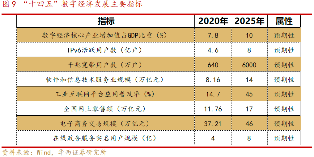 3)数字经济。今年以来,数字经济领域持续迎政策催化。国务院正式发布《“十四五”数字经济发展规划》,提出到2025年,数字经济核心产业增加值占GDP比重达到10%。近期地方两会也密集部署数字经济发展,多省提出具体发展目标,数字经济领域有望迎加速发展。
