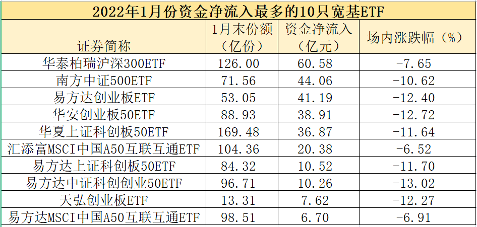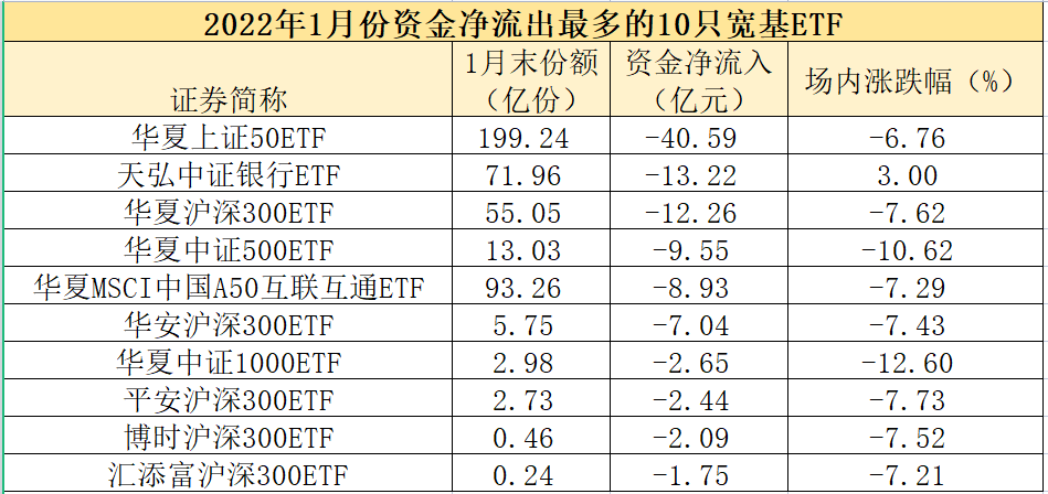 截至1月28日,今年首月资金流出最多的前10只股票ETF中,6只为宽基ETF,而4只为大盘蓝筹风格宽基ETF。