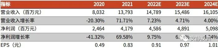2021年 ,公司归母净利率41.78亿元 ,预案分红23.17亿元 ,分红率55% 。