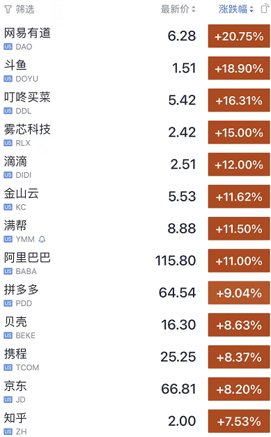 中概股涨疯了