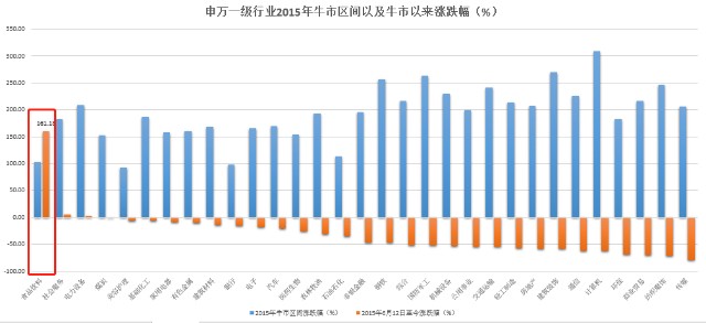 从14年10月底开始,券商、地产、银行、保险等大蓝筹板块轮番上涨,一直到12月,创业板接力上涨。
