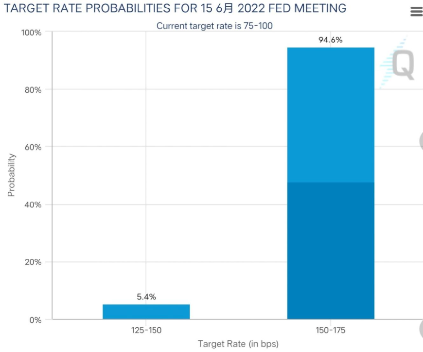 针对海外局势,上投摩根表示,“本周内即将迎来美联储6月会议,在美国5月CPI再创高位下,投资人对美联储加快升息步伐预期升温,最新CME FedWatch Tools显示,市场预估6月加息50个基点的可能性为5.4%, 加息75个基点的可能性则高达94.6%......本周会议前后外围市场震荡难免,不排除可能将带给A股一定的压力,但国内通胀相对可控。”