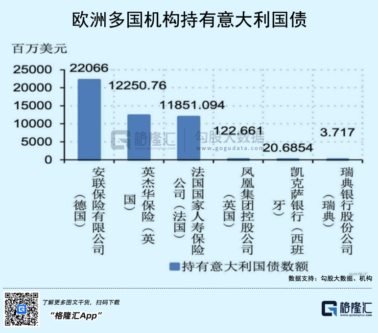 意大利要让庞氏骗局持续下去,至少有两个先决条件:第一,欧洲央行持续QE,保持低利率,甚至是负利率水平,否者利率过高,发债成本大升,不可维系。第二,意大利发行的国债要有持续的接盘人,原来是欧央行。但很尴尬的是,现在欧央行停了购债计划,没有了最后的兜底人。
