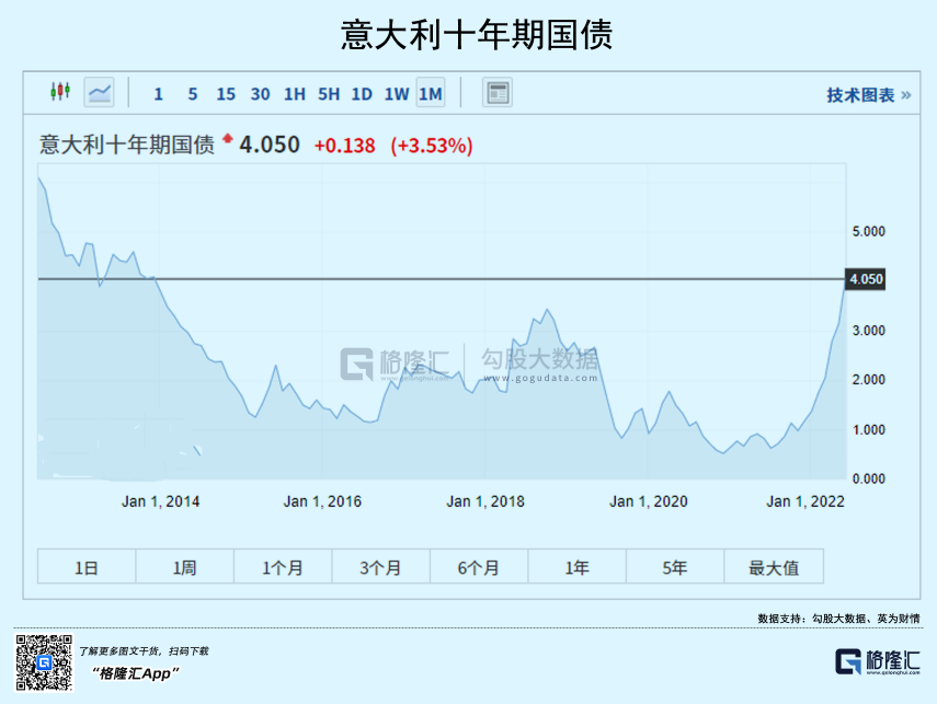 当前,意大利维持借新还旧的两个先决条件不复存在,那么爆发债务危机只是时间问题。且在当前美联储、欧央行持续激进的货币紧缩之下,债务违约问题更容易被点燃。比如,意大利10年期国债收益率在冲一冲,升一升,升破5%,甚至6%,爆发危机或许只是一瞬间。