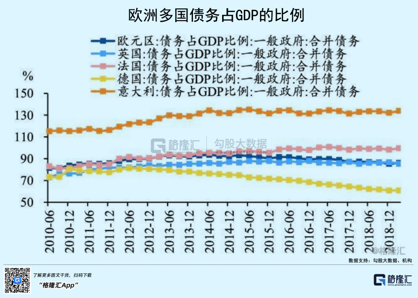 上一轮欧债危机,是从希腊开始的,但意大利差一点跟着崩盘。但希腊体量很小,仅占欧元区经济总量的2%,而意大利不一样,占欧元区的15%,且欧元区继德国、法国之后的第三大经济体。最后,意大利还是从欧债危机中挺过来了,主要靠欧央行大规模QE印钱来购买其国债,让债务得以延展。