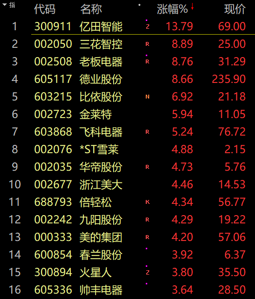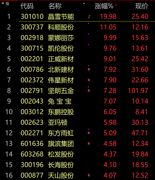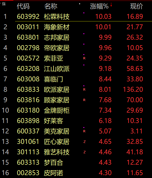 房地产产业链走强,家具、家电、装修建材等纷纷拉升