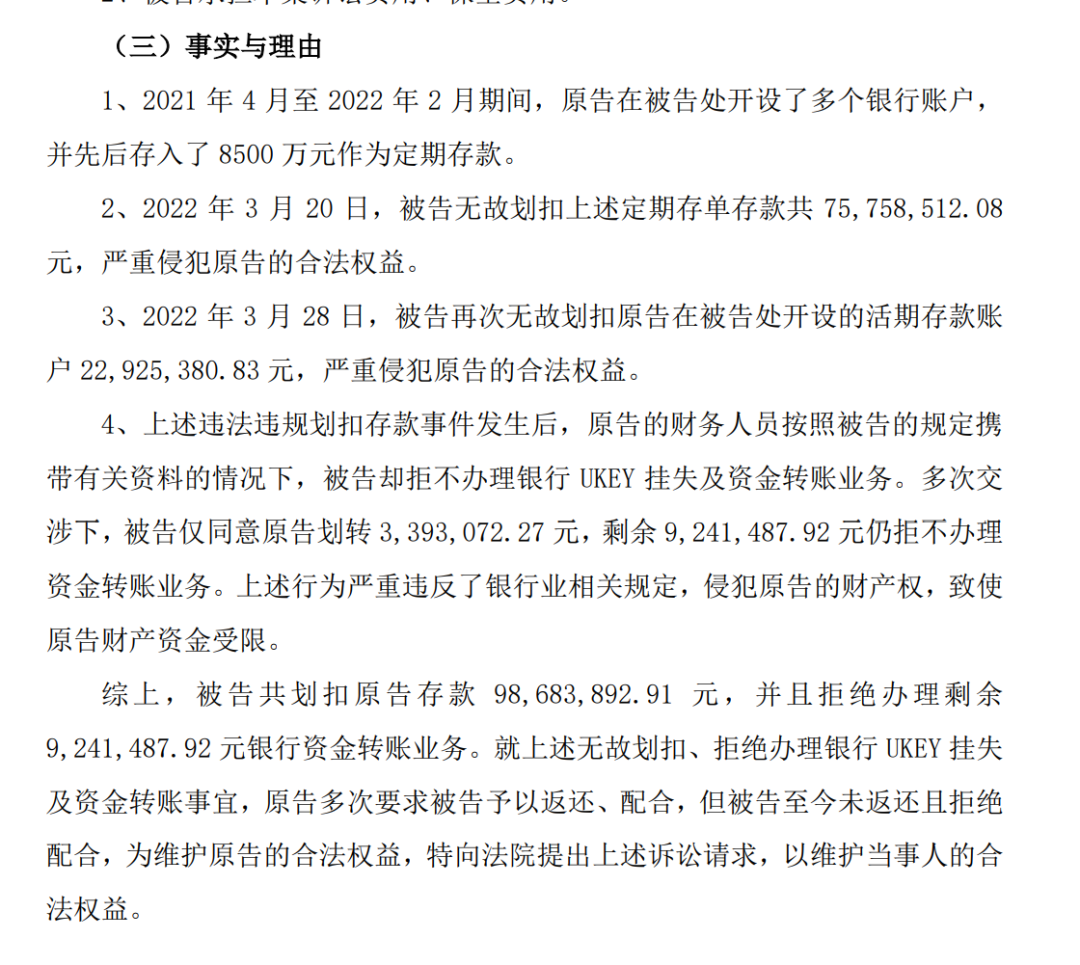 1亿存款被无故划扣?这家科创板公司怒告河南一银行