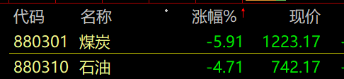 下跌方面,煤炭、石油等资源股集体大跌。有分析指出,当前,美联储激进式加息让大宗商品持续承压,作为大宗商品之王的原油也不例外,全球原油市场面临着来自宏观层面的冲击。