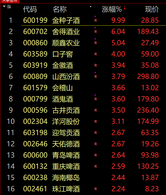 白酒等大消费板块走势活跃,金种子酒涨停,舍得酒业、山西汾酒、酒鬼酒等股涨幅居前。中信建投证券最新研报指出,白酒行情脱离底部震荡,把握6月拐点积极布局,重视高端酒及次高端龙头机会。