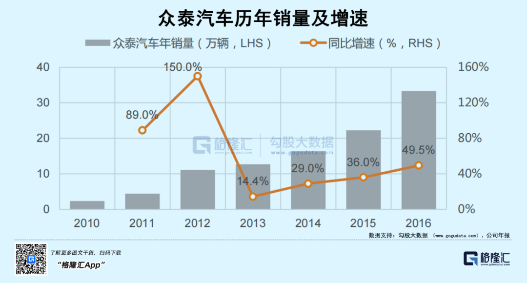 无可否认,抄袭是一条来钱快的路子,因为抄袭得以减少很多不必要的研发环节,众泰的经营业绩也一度很不错,在2017年之前,汽车产销量都在节节攀升。