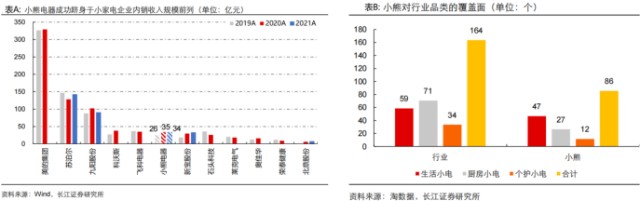 2021 年,公司内销收入达到 34 亿元,接近苏泊尔 内销收入 1/4,九阳内销收入的 1/3,内销规模在厨房小家电行业中排序第四。龙头还积极扩容空白品类。参考 2021 年淘数据,行业统计口径下,小家电中厨房、生活、个护行业分别包含的品类数为 71、59、34 个,合计达 164 个。