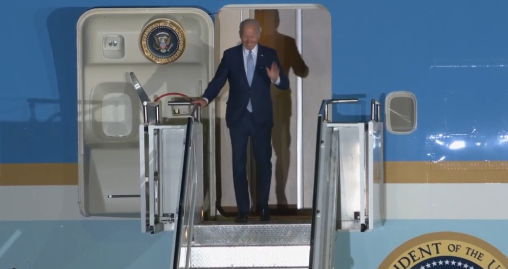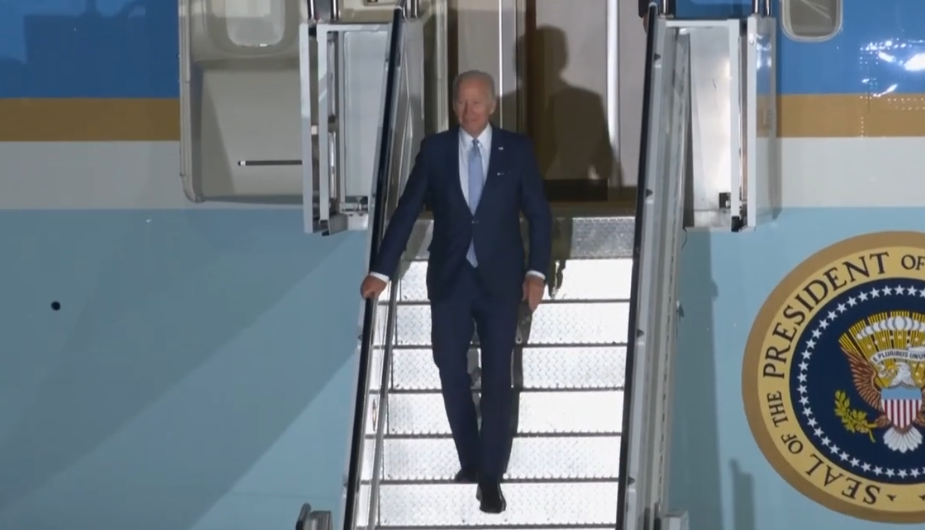 拜登抵达德国现场图。图源外媒
