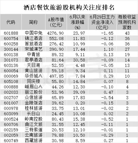 旅游概念股机构关注度排名