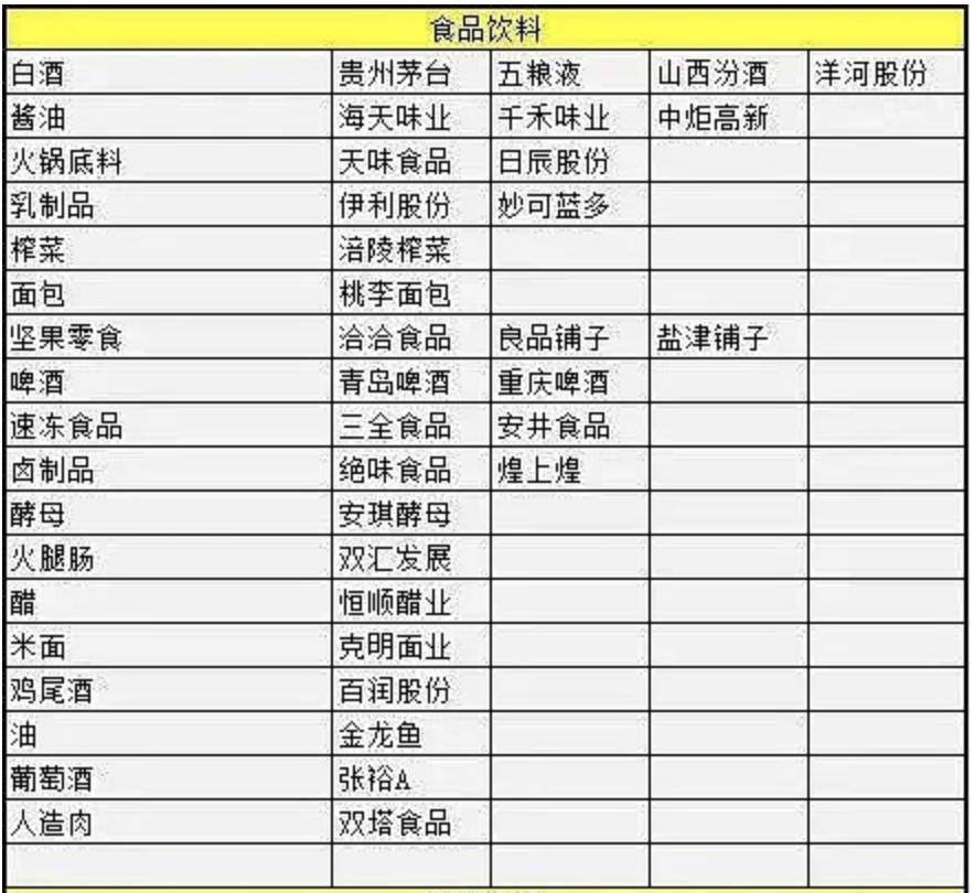 大消费概念股分类盘点: