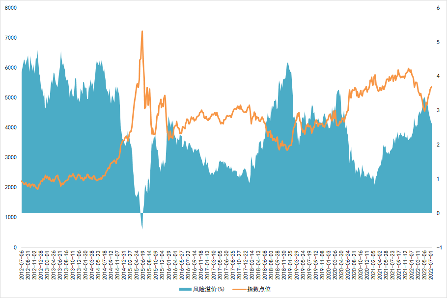 所谓股债性价比,又叫股债比价、股债利差,或者风险溢价,用股票的隐含回报率和债券到期收益率差值来判断,当前时间点股票资产相对债券资产的安全边际的高低程度。计算公式为1/市盈率-中国10年国债收益率。