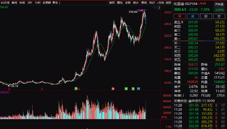 最火的新能源赛道,重磅个股接连动荡。今天上午轮到了“迪王”之称的比亚迪。
