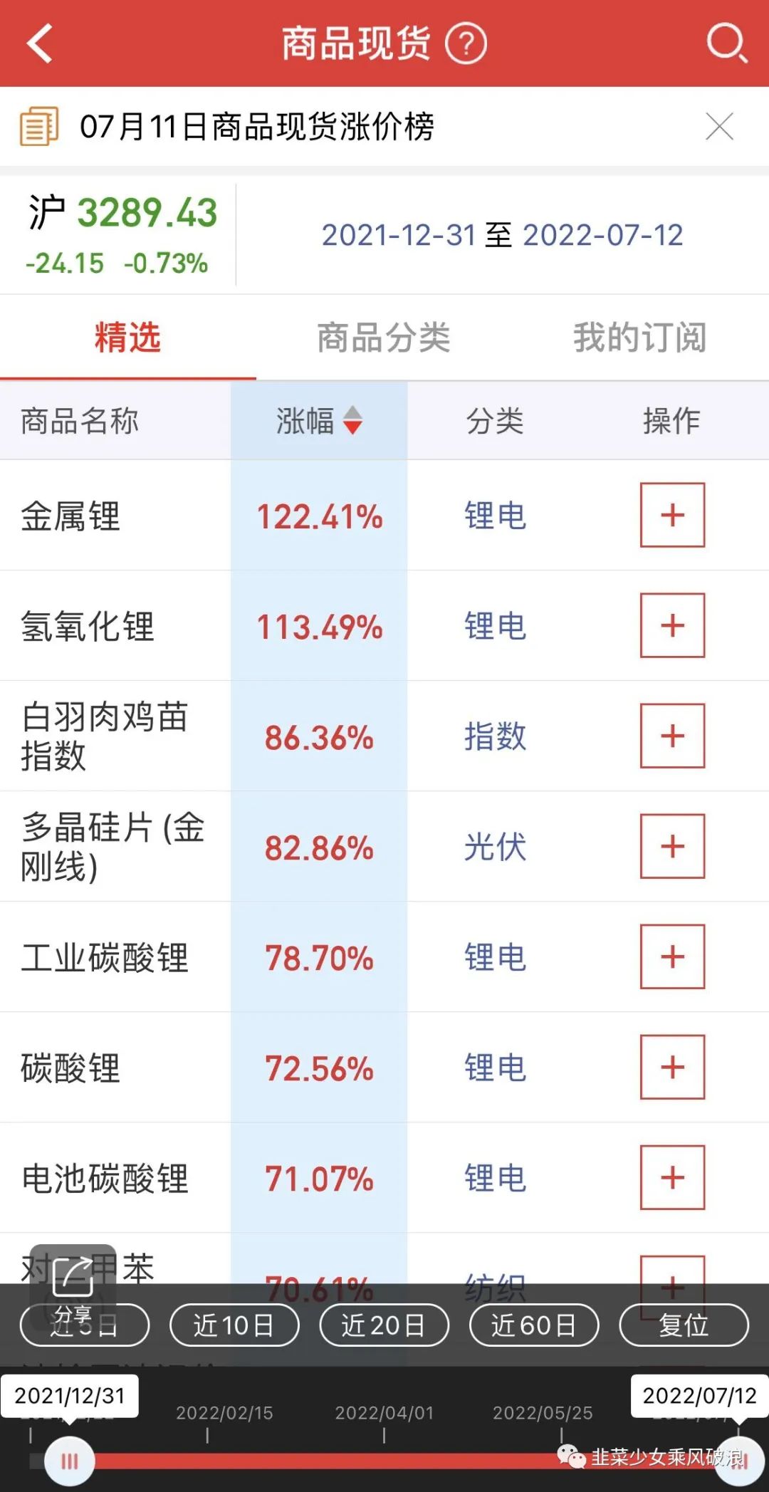 这里小韭再和大家分享一个小秘密,每次财报季前,市场都会聚焦于业绩高增的公司和所处行业。比如今年大家都看好上游,今年以来涨幅靠前的产品就是锂、鸡、磷肥、硅料、金刚线等,如果在5月中下旬开始布局这些涨价靠前的受益公司,最近两个月都能躺赢~