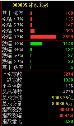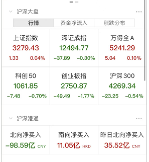 个股整体涨多跌少,两市近3300股飘红,成交未能突破万亿元。截止收盘沪指微涨0.04%,深成指跌0.3%,创业板指跌1.77%。北向资金全天单边净卖出98.59亿元,创一个月新高;其中沪股通净卖出57.95亿元,深股通净卖出40.63亿元。