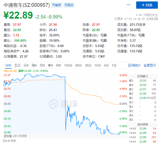 中通客车闪崩,发生了什么?