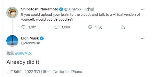 特斯拉CEO埃隆-马斯克表示,他已经将自己的大脑上传到云端,并已经与自己的虚拟版本交谈过。