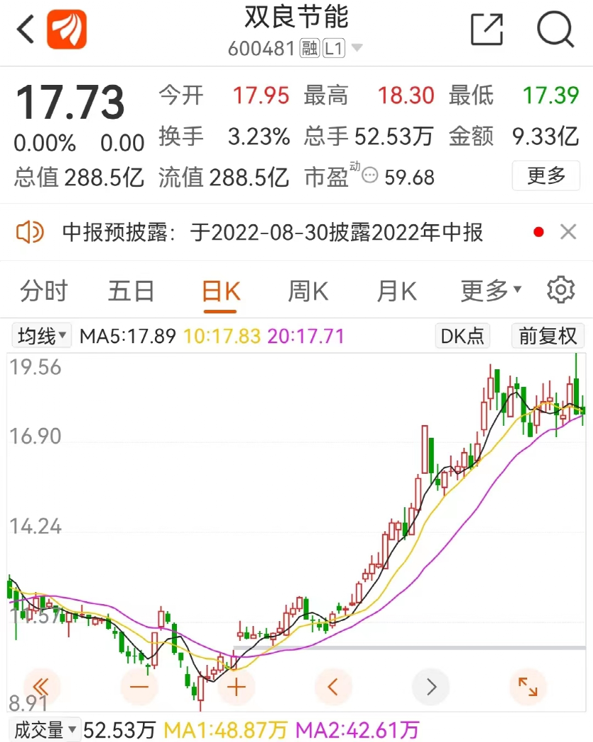 在二级市场上,双良节能今年以来股价持续走高,截至22日收盘,其股价较4月以来最低价上涨98.99%。