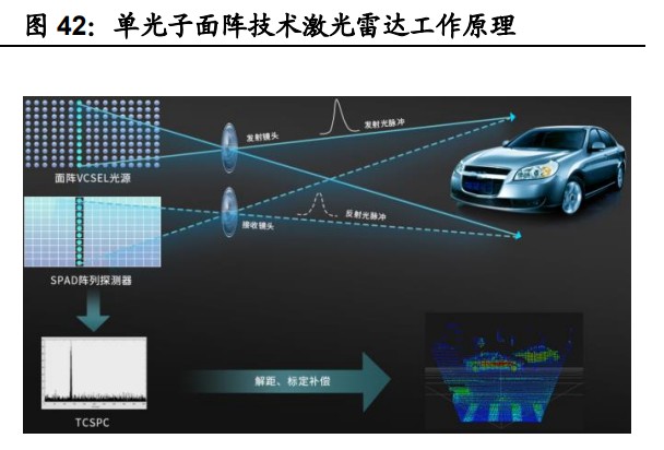与 APD 相比,SPAD/SiPM 具有灵敏度高、结构紧凑等优点。SPAD/SiPM 可探 测距离超过 200m、5%的低反射率目标,在明亮的阳光下也能工作,在具备较高 分辨率的同时可采用小光圈与固态设计集成到汽车中,正成为新兴激光雷达探测 器。目前,国内外多个激光雷达探测器厂商对 SPAD/SiPM 探测器有所布局, Flash 激光雷达也较多采用 VCSEL 加 SPAD 的方案。