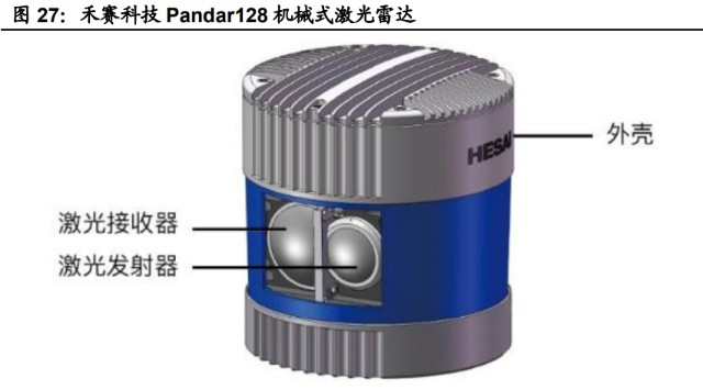 机械式激光雷达实现高线束需要多个激光发射器,同时扫描系统依赖电机,部件、制造、系统成本都很高。以 Velodyne 的 64 线激光雷达为例,采用了 16 组激光 发射器以及 2 组激光接收器,产品结构复杂。据汽车之心,Velodyne 的机械式 激光雷达 Puck VLP 16 总 BOM 成本约 830~990 美元。