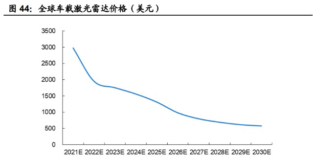 规模效应、自动化生产及合理的工艺设计有望降低激光雷达成本。据 Yole 预测, 到 2026 年,全球车载激光雷达平均价格(含机械式)有望下降至约 1000 美元, 到 2030 年,全球激光雷达平均价格有望下降至约 600 美元。