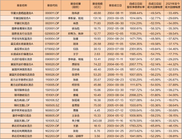 46只基金的平均历史最大回撤幅度是-55.27%。这个数字听上去有点吓人,不过还是得结合时代背景来判断。