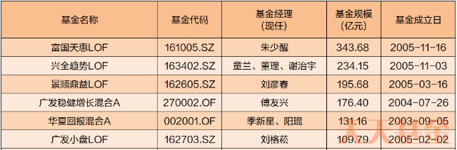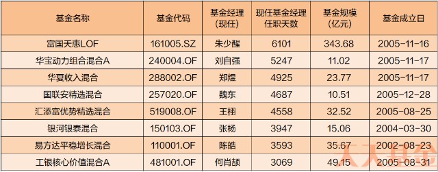 这些10倍基的成立日期从2002年5月到2006年11月不等,平均年龄在18岁上下,可以算是基金里的寿星了。