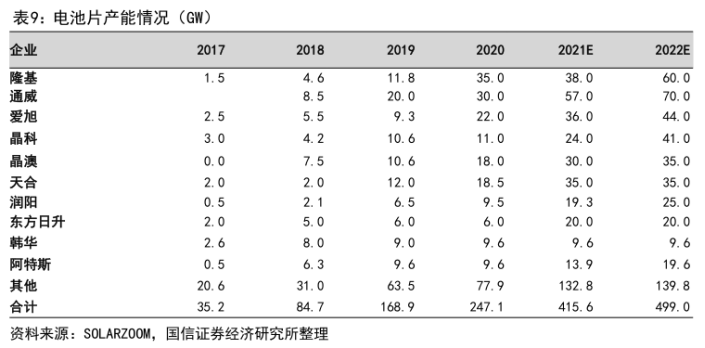 3)新技术加持更利好一体化龙头和电池片环节的战略地位。