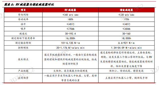 目前工业领域的机器人主要使用RV减速器和谐波减速器,二者也均可应用于人形机器人的不同部位。