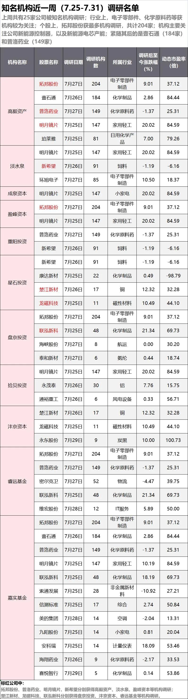 行业上,电子零部件、化学原料药等获机构较为关注;个股上,拓邦股份获最多机构调研,共计204家;机构主要关注公司新能源控制器,以及新能源电芯产能;紧随其后的是壹石通(184家)和普洛药业(149家)。