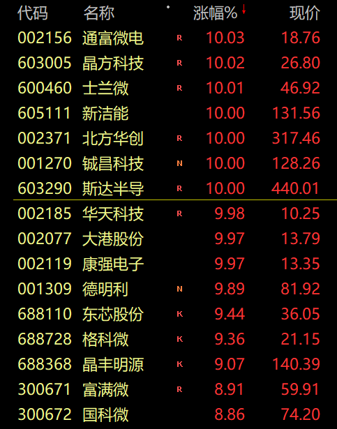 半导体、芯片板块掀涨停潮,大港股份4连板,科创板龙芯中科、华峰测控午后封板,华大九天、芯原股份、晶方科技、新洁能、斯达半导等超十余股涨停。
