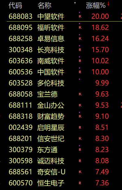 国产软件股也强势爆发,中望软件、中国软件、南威软件、多伦科技等多股封板。此外光刻胶、数字货币、券商等板块轮番走强,