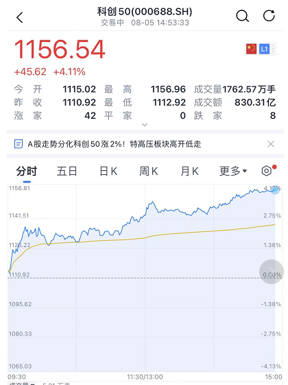 重仓半导体的科创50,涨了4%。
