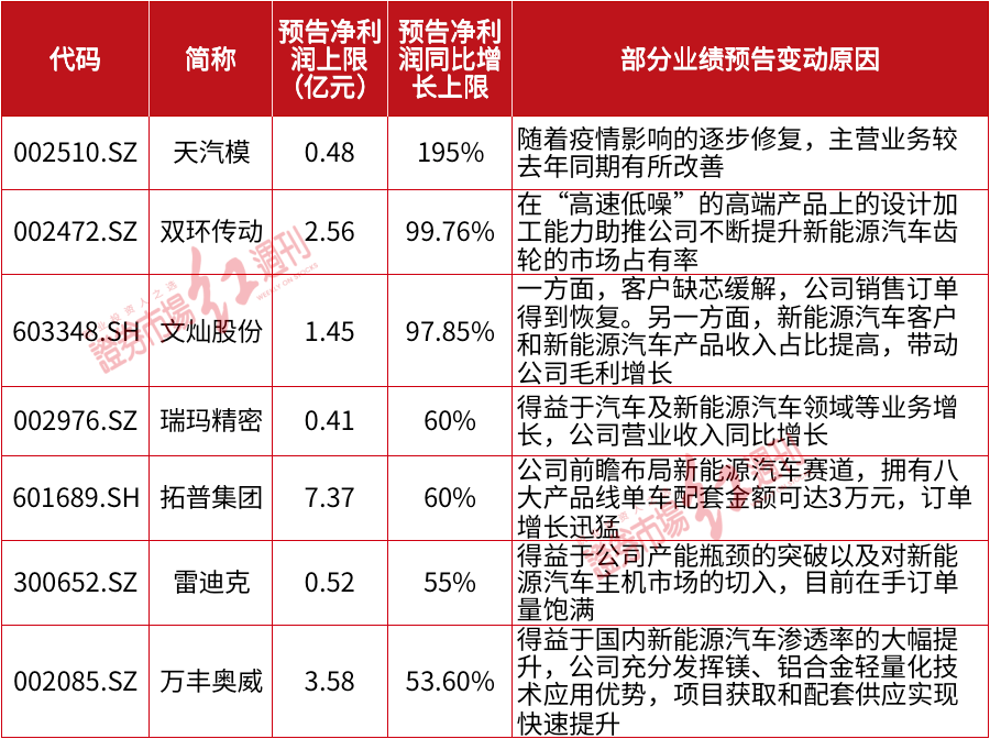 最近汽车整车市场的加速回暖,一些零部件上市公司频频发布业绩预喜公告。部分中报业绩预喜汽车零部件公司见下表: