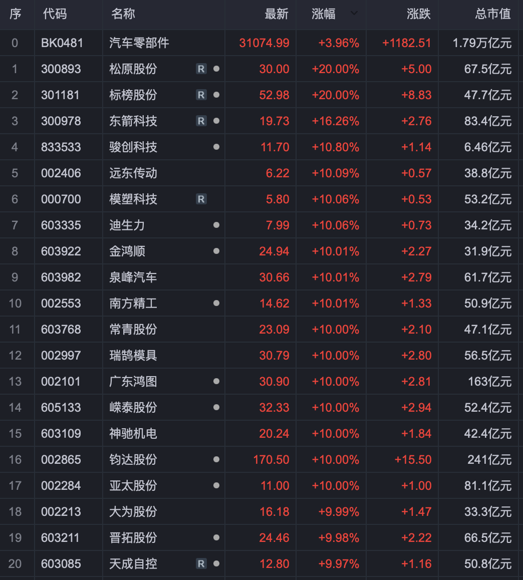汽车零部件概念股持续走强,相关概念股有哪些?