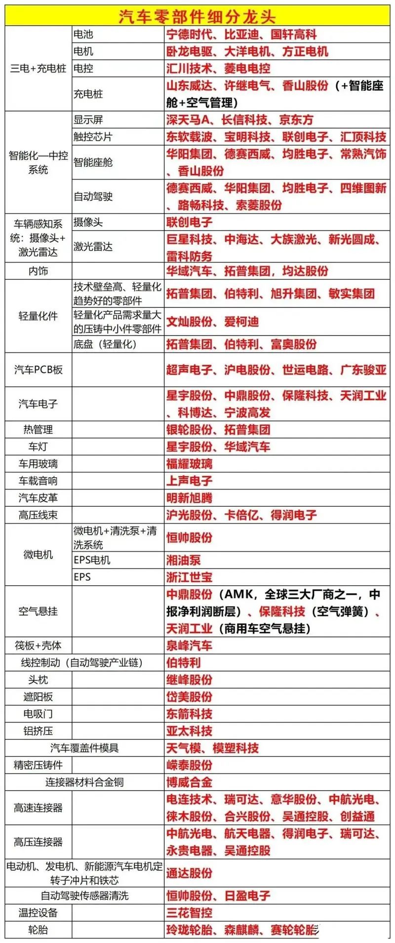 汽车零部件概念股名单: