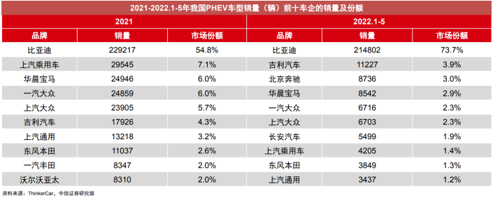 中信证券指出,与过去PHEV主要销售在一二线等限行限牌城市不同,PHEV已经呈现出加速替代燃油车的迹象,2022年1-5月,三四五线城市的PHEV占比分别达到了18%、17%、16%,相较于2020年提升明显+5%、+7%s、+9%。
