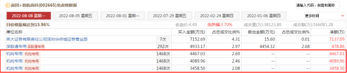 8月8日,其核心个股首航高科获龙虎榜机构席位大买,三机构联合买入累计1.2亿。东北证券最新研报指出,这是近几年来机构首次正式买入这个票。而自7月18日的相对低点以来,公司股价17个交易日内已经大涨接近70%。