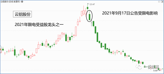 去年9月17日云铝股份的一则公告,让轰轰烈烈的限电停产行情急转直下,连续大跌。