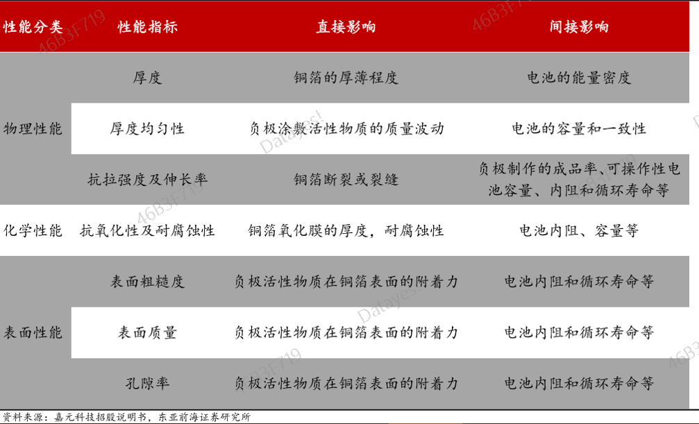表:锂电铜箔的性能对锂电池性能的影响