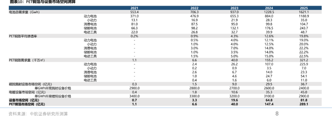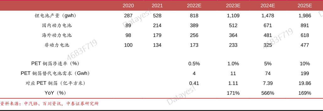 表:PET铜箔2022-2025市场空间测算