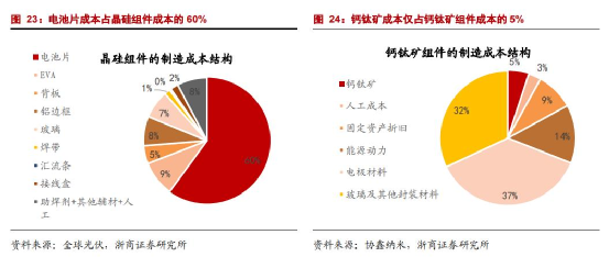 此外,钙钛矿电池相比晶硅产业链大幅简化。中信证券指出,生产钙钛矿组件单瓦能耗只有晶硅组件的1/10,成熟期的钙钛矿电池单位产能投资额为晶硅电池的一半,综合成本看,钙钛矿组件单瓦总成本约为5到6毛钱,是晶硅极限成本的50%。