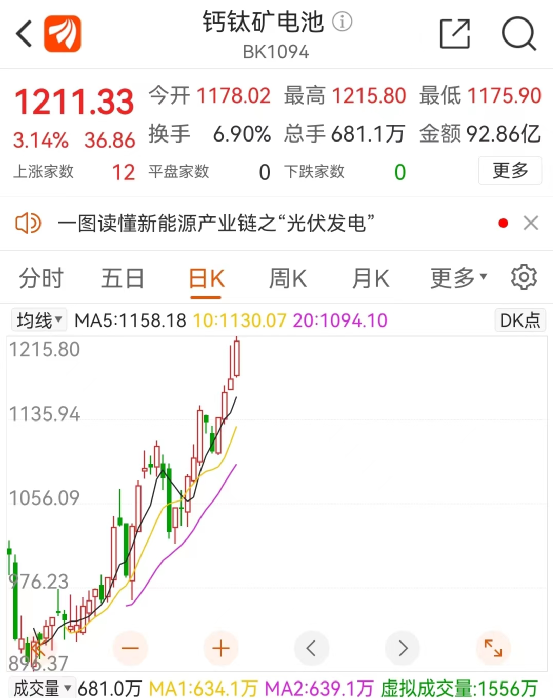 值得注意的是,钙钛矿电池概念已经在二级市场上受到追捧。自7月初以来,钙钛矿电池概念板块指数一路从896.37点涨至1215.8点(截至8月18日最高点),上涨幅度达到35.6%。