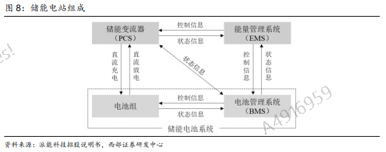 其中的电池组是储能系统最主要的构成部分;BMS主要负责电池的监测、评估、保护以及均衡等;EMS负责数据采集、网络监控和能量调度等;PCS可以控制储能电池组的充电和放电过程,进行交直流的变换。