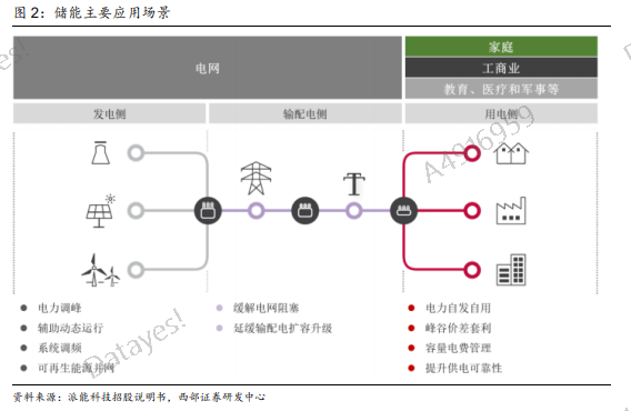 2.按照储能的应用场景分,从整个电力系统的角度看,可以分为发电侧储能、输配电侧储能和用电侧储能三大场景。