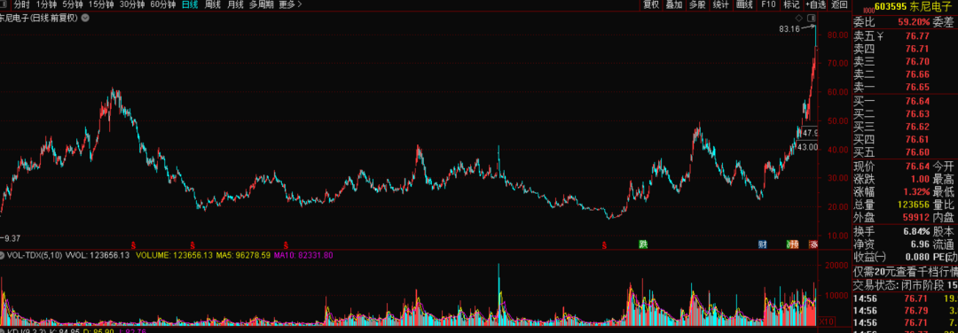 像东尼电子这样的走势,只能期待出现大的回调,再择机进入赚钱了。